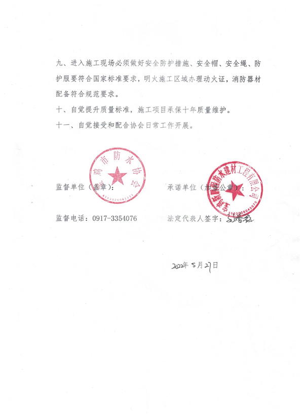 宝鸡新鹏程防水建材工程有限公司----信用承诺