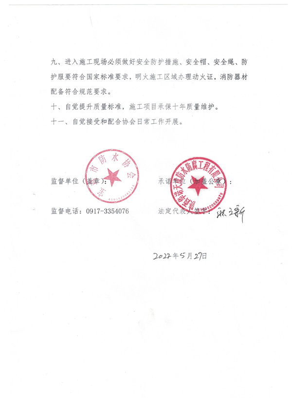 陕西华诺天成防水防腐工程有限公司----信用承诺