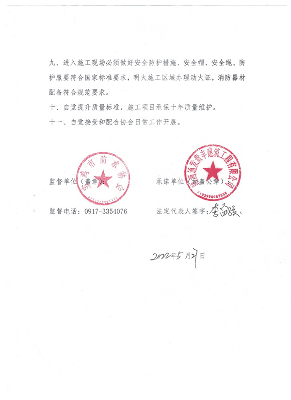 陕西通发贵丰建筑工程有限公司----信用承诺